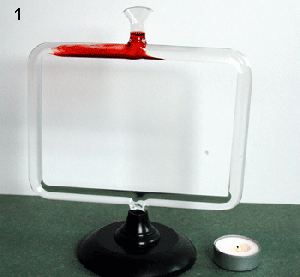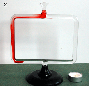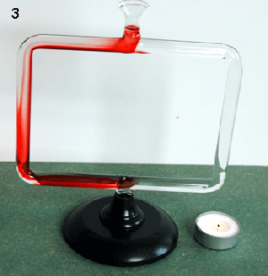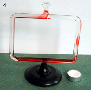 added to the water. As the hot water above the candle rises it pushes the dye round the apparatus.